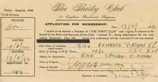 Rather more expensive are three documents featuring the signature of Guy Gibson. They are on sale at Paul Fraser Collectibles for no less than £22,000. I have to say this seems an enormous price for a photograph, a page from an autograph album and an application form for a Skegness ‘entertainment’ club. In these straitened times, will anybody pay this amount? As the sale will be private, we shall probably never know.