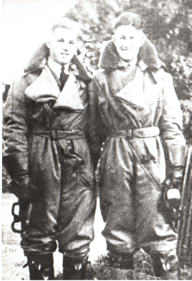 Charles Jarvie, on right, photographed with his crewmate John Wilkinson, wireless operator in AJ-K on the Dams Raid. Photograph probably taken between February and May 1943. [Pic: Wilkinson family]