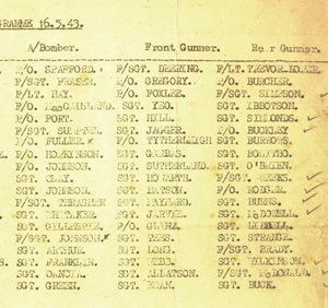 Detail from the Night Flying Programme shows Fred Tees listed as flying as AJ-C’s front gunner.