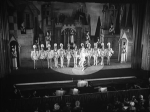 One of the many highlights of the film. The switch from a studio train carriage to actual theatre footage of the troupe is a wonderful contrast, and the perfect link to Gibson supposedly discovering how to fly the Lancasters at 60 feet (even though we all know now Gibson had nothing to do with this aspect)