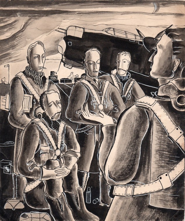 ‘A last smoke before take-off’, drawing by Jack Guterman, 1942/3. Pic: Guterman family