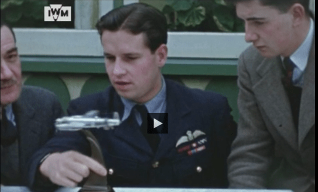 The production company’s records are lost, so exactly how the matter was settled is not clear. It appears that Brickhill never paid any money to Eve Gibson but it was agreed that Enemy Coast Ahead would be credited in the opening sequence. More remarkably, it appears that it was also agreed that two more short sequences would be shot to appear in the final film. These are the cockpit scenes which take place after Gibson’s AJ-G has crossed the Dutch coast. In the original edited version of the film, all that Richard Todd as Gibson says here is ‘Stand by front gunner, we’re going over.’ This is allowed by a scene where Wallis, Bomber Harris and others are shown waiting tensely. But in the final cut, instead of going on to show the progress through Holland, two rather odd scenes then follow. The first shows the cockpit of Melvin Young, leading the second group of three in AJ-A. His navigator then says ‘Enemy Coast Ahead’. An external shot is then followed by a scene in Henry Maudslay’s AJ-Z, where the pilot fastens his oxygen mask and says ‘Enemy Coast Ahead.’