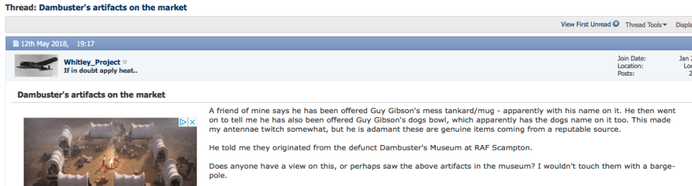 A recent post on the Historic Aviation forum alerted me to the fact that the trade in fake Dambuster material is still going on. The item was posted by someone called Whitley Project who was rightly sceptical: