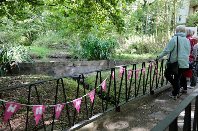 Either walk diagonally across or around the field to the memorial at the foot of a tree in the corner.