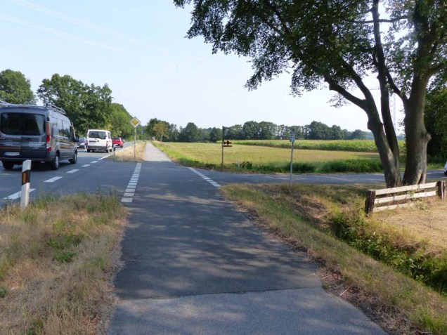 After ½ mile, look for a small green signpost to HALDERNER STR 59 on the left, and immediately after, take the narrow tarmac road to your right.
