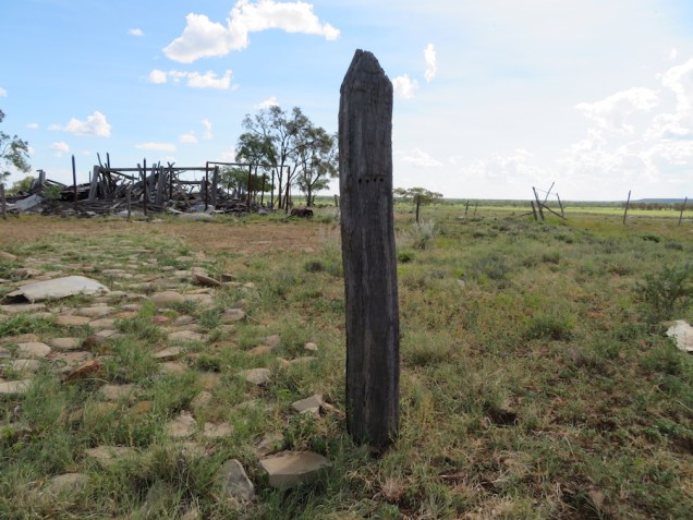 It is quiet there; the only sounds are the wind, the lowing of cattle, the sudden sound of disturbed locusts whirring away. Possibly if one had time to sit on the rocky ground, back against the one standing gatepost, and just listen, you might hear voices, or music. There was life here once; Charlie’s photo albums show costume parties, tennis matches, New Year’s celebrations, boating on the waterholes. The local papers record how the town folk from Hughenden would come here to play cricket against the country dwellers. Now, it is silent.