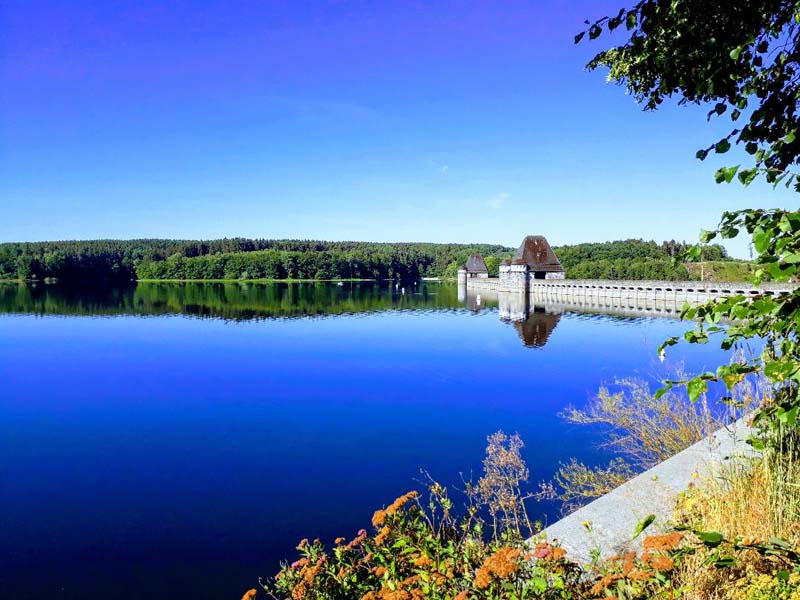 The most logical route to this site is from the dam. Turn right out of the car park and proceed towards Möhnesee, passing the Hotel Haus Delecke on your right.