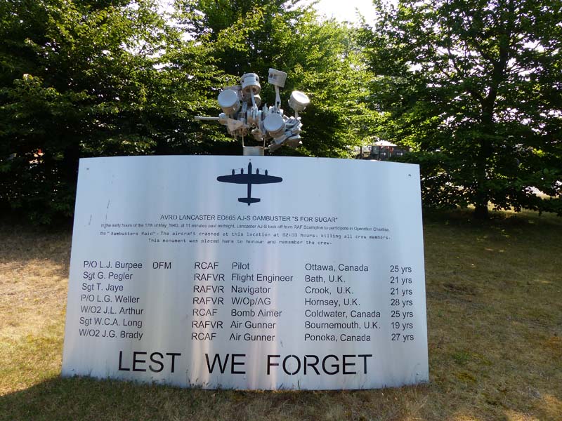 On the evening of 16th May 1943, 133 aircrew in 19 Lancasters took off from RAF Scampton in Lincolnshire to attack the German dams east of the Ruhr. Eight aircraft and 53 men did not return. Three men survived their crashes and became Prisoners of War.