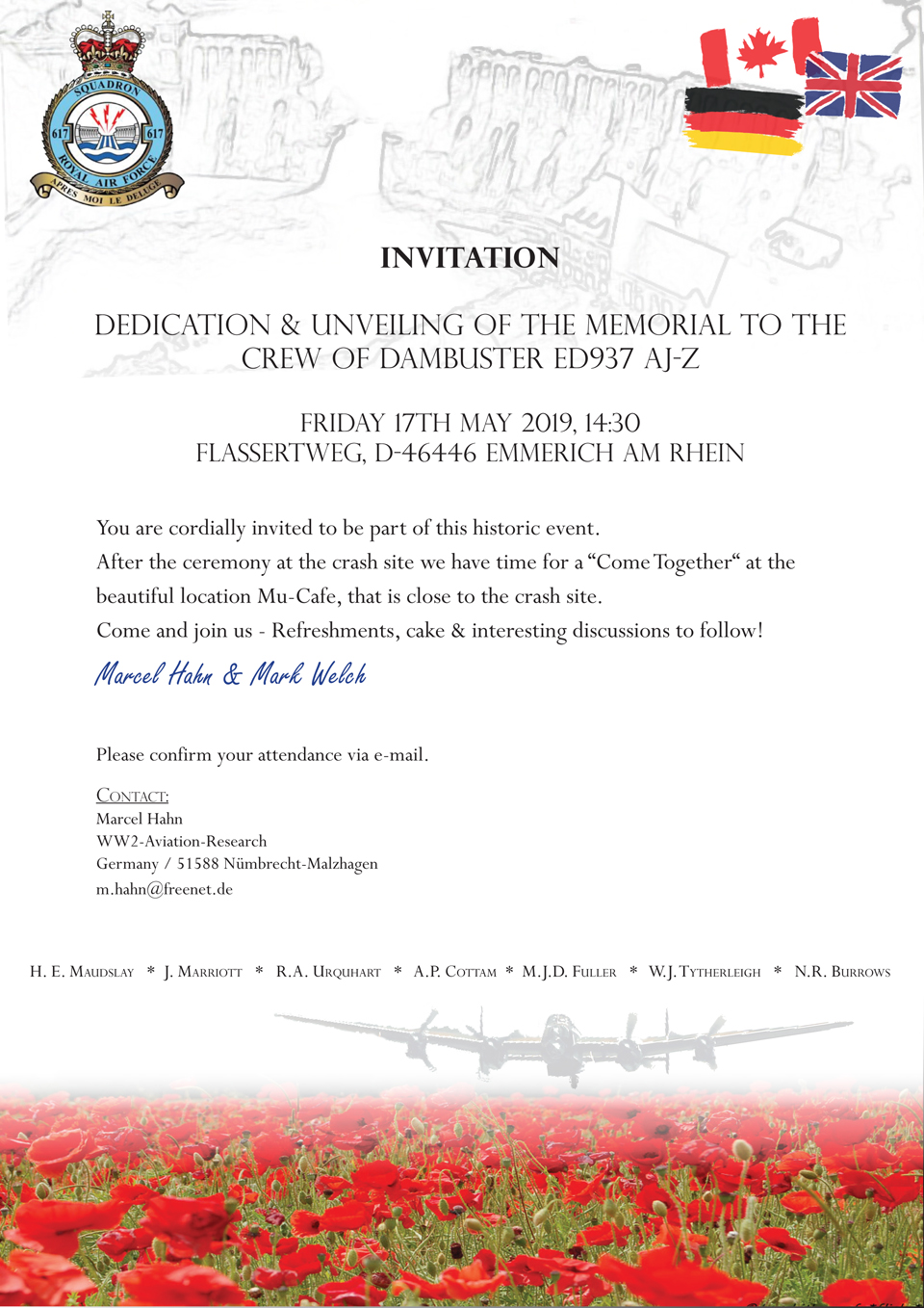On the evening of 16th May 1943, 133 aircrew in 19 Lancasters took off from RAF Scampton in Lincolnshire to attack the German dams east of the Ruhr. Eight aircraft and 53 men did not return. Three men survived their crashes and became Prisoners of War.