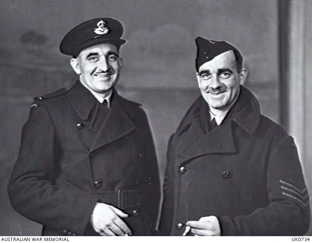 Lance Howard, left, photographed in November 1943 with his brother, Sgt Godfrey Howard, who also served in the RAAF. Sadly, Godfrey was lost on operations over Italy on 25 February 1944, while serving in 104 Squadron. [Pic: Australian War Memorial UK0734]