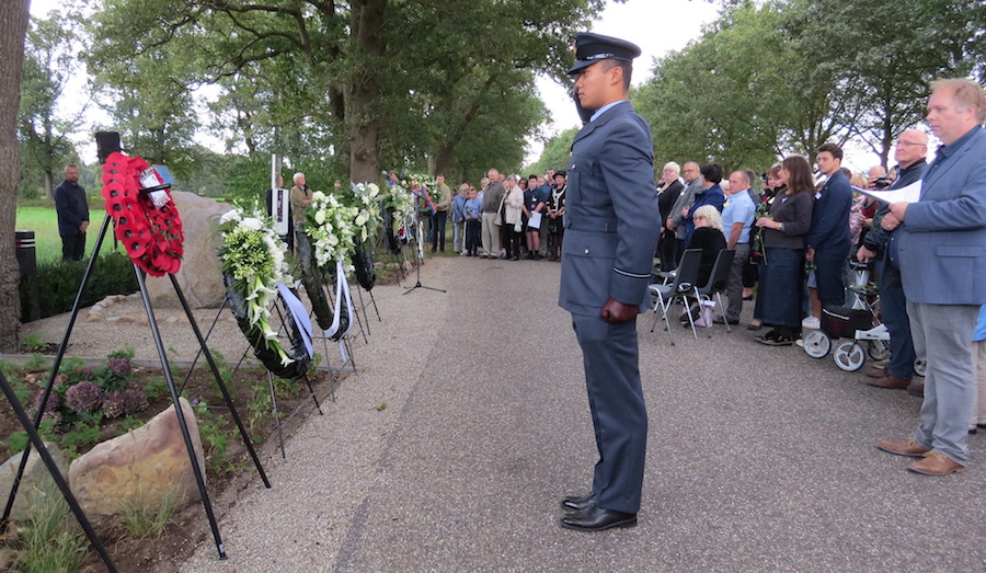 Not surprisingly, Knight is regarded as something of a hero in the town. He was buried the next day in the local cemetery, in a hastily arranged service which most of the local population attended, despite being ordered not to by the occupying German forces. A granite memorial stone has now been erected at the crash site itself and it was near there on Saturday 15 September that the main commemoration took place. Several hundred people attended, and listened to speeches by the mayor, local politicians, community organisers and the Australian ambassador. Little children with cute Dutch pigtails read out poems. And a brass band played a selection of hymns and the Dam Busters march. They ended with the Last Post, and this was followed by two minutes silence. One of the quietest and deepest two minutes silence I have ever attended, and terribly moving.