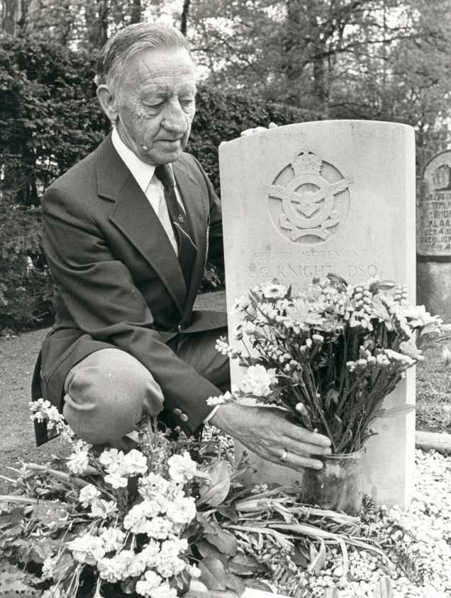 Knight stayed at the controls and attempted a forced landing in a field. He nearly succeeded, but the aircraft hit a bank running across the field and exploded. All seven of the rest of the crew landed safely. Five evaded capture, while two became PoWs. There is no doubt that they all owed their lives to their young pilot, something that they never forgot.