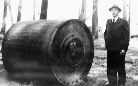 Norman Barlow’s unexploded mine, photographed by the Germans soon after the raid. [Pic: IWM]